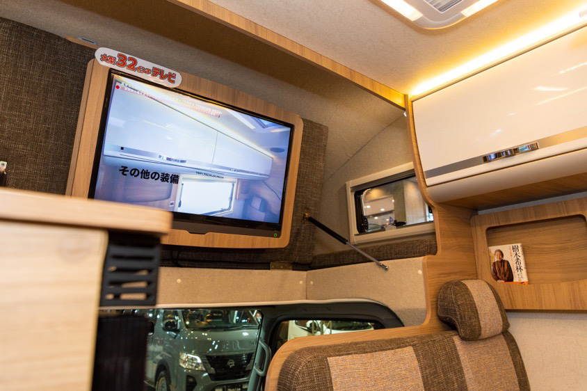 ちなみにもう一台の展示車両、カムロードベースのキャンピングカーは、長旅を快適に、そしてスタイリッシュに楽しめるオリジナルモデル「トリッププレミアム」。