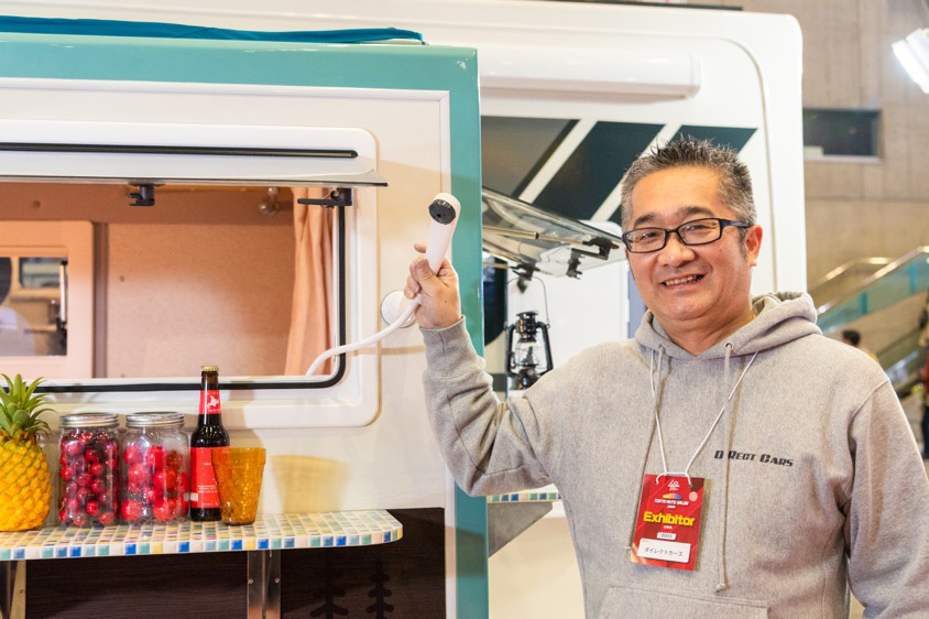 東京オートサロン2022で、女性の目を惹きつける可愛らしくおしゃれな軽キャンピングカーを展示していたのが、キャンピングカー車中泊専門店のダイレクトカーズ。