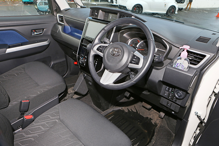 GT-Rは車高が低いため、雪の多い冬はバッテリーを外して車庫に置いているとのことで、冬期はこのルーミーが大活躍してくれるのだ。雪道を歩いたあとに乗っても車内が汚れにくいようにシューズトレイやフロアマットを搭載しているなど、大切にしているのが伝わってくる。