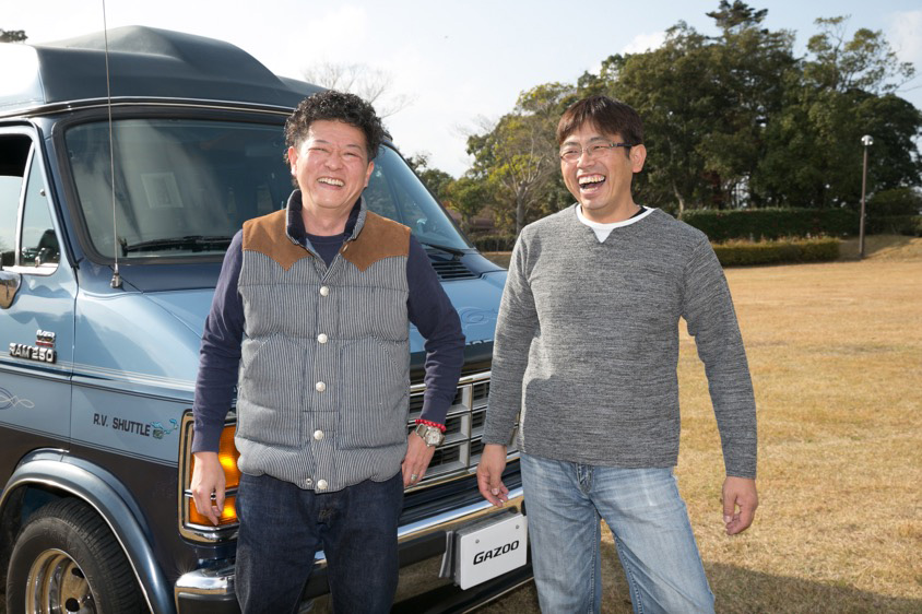 この日も、仕事仲間でもあるチューニングショップ部動屋の神之田代表が、堀口さんの撮影があると聞きつけて1時間半以上離れた出水市から様子を見に吉野公園を訪れ、楽しそうに談笑していたのが印象的だった。大好きな旧車のアメ車で、趣味のジェットスキーを引っ張るためにも使えてキャンプにもちょうどいい。そんなラムバンは自分の好きなものに対して妥協しない堀口さんらしい愛車だといえるだろう。