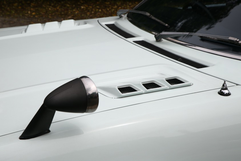 「外見で一番気に入っているのはリヤの“バナナテール”ですね。そうそうナンバーは希望ナンバーで『1600』にしています。それに正面から見るとマスタングみたいに見えるところや、ダルマとは異なる形状のフロントグリルも気に入っています。マフラーはキャブ音が響くのが気に入っているのであえてノーマルのままにしています」