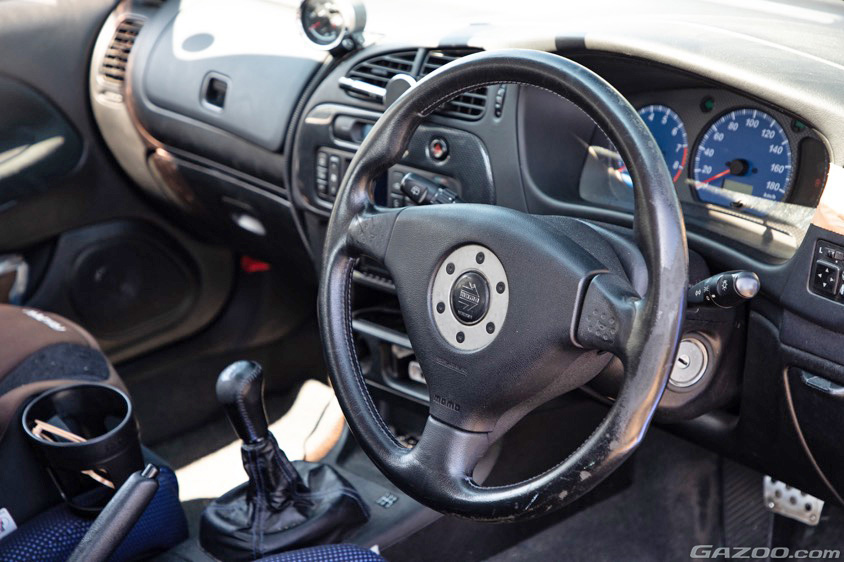 「このVIは『ランサー』という名前の最後のモデルなんです。このあとから車名が『ランサーエボリューション』という独立したモデルになってしまうため、WRCに参戦するためにグループAのホモロゲーションを取得した最後のクルマっていうのが、今となっては自分の気持ちの面でこだわりのひとつですね。あと、ランサーのグレードは非常に多いんですけど、上位の2つにGSRとRSとあって、RSは競技向けで、GSRはエアコンやパワーウィンドウがついている乗用車向けのグレードなんです。ちなみにこれはGSRで…」