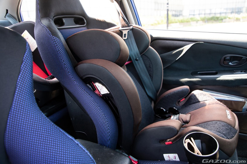 じつは青木さんがランサーを購入しようと思ったのは、父親とおなじようにこのランサーをファミリーカーとして使いたいと考えていたからだそうで、現在は2脚のチャイルドシートを搭載している。