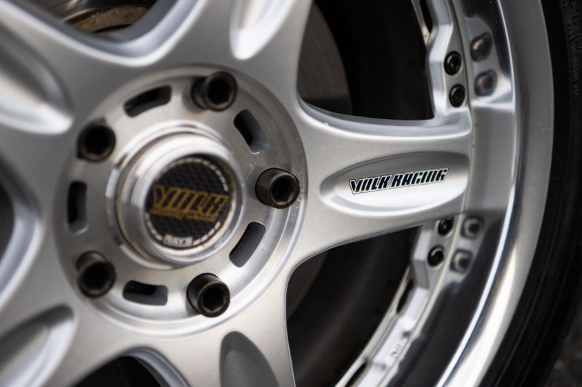 「たまたま通り道にあった中古ショップに立ち寄ったら、このホイールがちょうど買取で入ってきたんです。まだ買い取ったばかりでプライスも出ていなかったんですが、どうしても欲しいということで即購入させてもらいました。しかもフロント7J、リア8Jとサイズも理想的で、まさに奇跡的な出会いだったと思います」