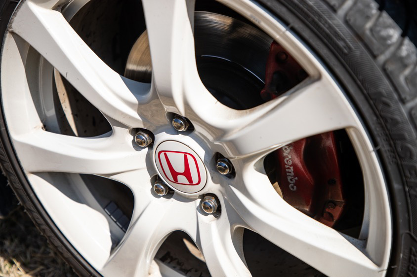 「純正ホイールサイズは17インチなんですけど、このエアロと見た目の相性がイマイチだなと感じていて、あまり好きじゃなかったんです。そこで18インチを探していたところ、たまたま先輩から『FD2シビックの純正ホイールがあるけん、よかったらあげるよ』と譲ってもらえたんです」