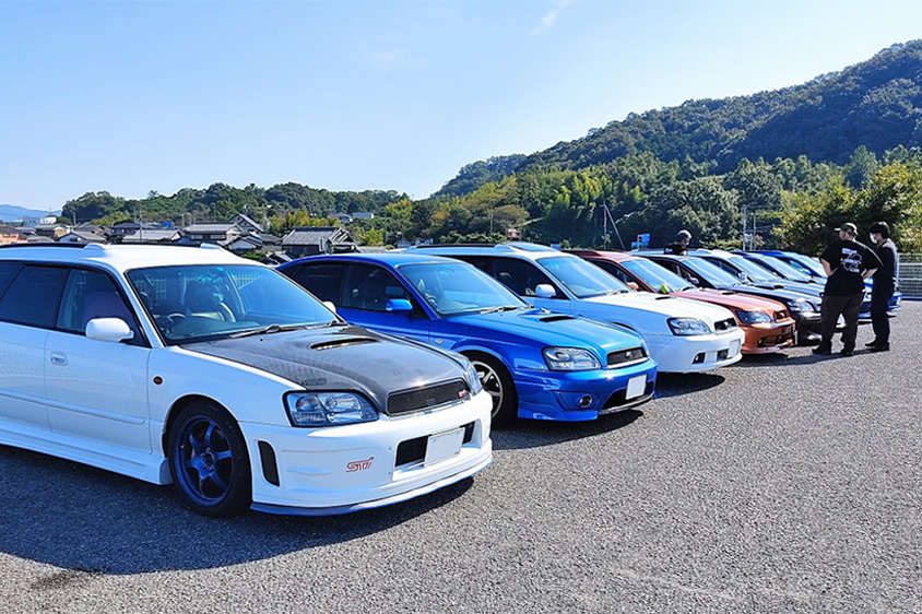 「四国在住のレガシィオーナーの集まりなんですが、レガシィに一生乗ると宣言しているオジサマ方や、すでに10年近く乗っているという女性オーナー、レガシィB4とAE111トレノを所有する若者、免許取り立ての女子など、ものすごく濃いメンバーに囲まれて楽しい日々を過ごしています。そうそう、そのうちのひとりが自分の働いている工場で作業や塗装などもやってくれたりするので、すごく助かっているんですよ!」