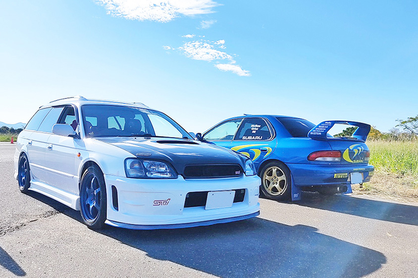 「四国在住のレガシィオーナーの集まりなんですが、レガシィに一生乗ると宣言しているオジサマ方や、すでに10年近く乗っているという女性オーナー、レガシィB4とAE111トレノを所有する若者、免許取り立ての女子など、ものすごく濃いメンバーに囲まれて楽しい日々を過ごしています。そうそう、そのうちのひとりが自分の働いている工場で作業や塗装などもやってくれたりするので、すごく助かっているんですよ!」