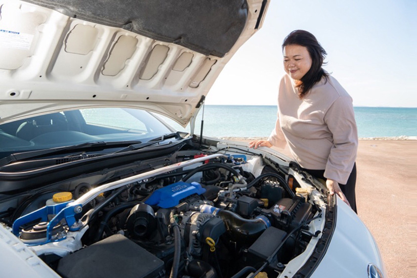 「私にたくさんのいい出会いをさせてくれるのがこのBRZです。すごく助けられているし、視野も知識も人間関係も広げてくれくれました。私、実はオーナーズクラブの活動を始める前は、沖縄の名所や観光地を回ったりすることもなかったんです。でもメンバーとツーリングを通して沖縄の広がりを知ることができました。それにこのクルマを持つ前は、ボンネットも開けられないくらいクルマについて無知だったんですよね。でもクラブで素敵なメカニックさんたちと知り合うこともできて、今はすごく助かっています。そのどれもが、このBRZに乗ったからなんですよね」