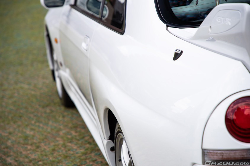 「このおかげで走行安定性か上がって、走りは第2世代のなかで1番いいんですから。どの角度から見ても美しいんですけど、強いてあげるならフロントからリアにかけてのボディラインや、オーバーフェンダーの膨らみかな。あとはGT-Rというエンブレムも。でも、なんといっても魅力的なのは、やっぱり走りですよ」