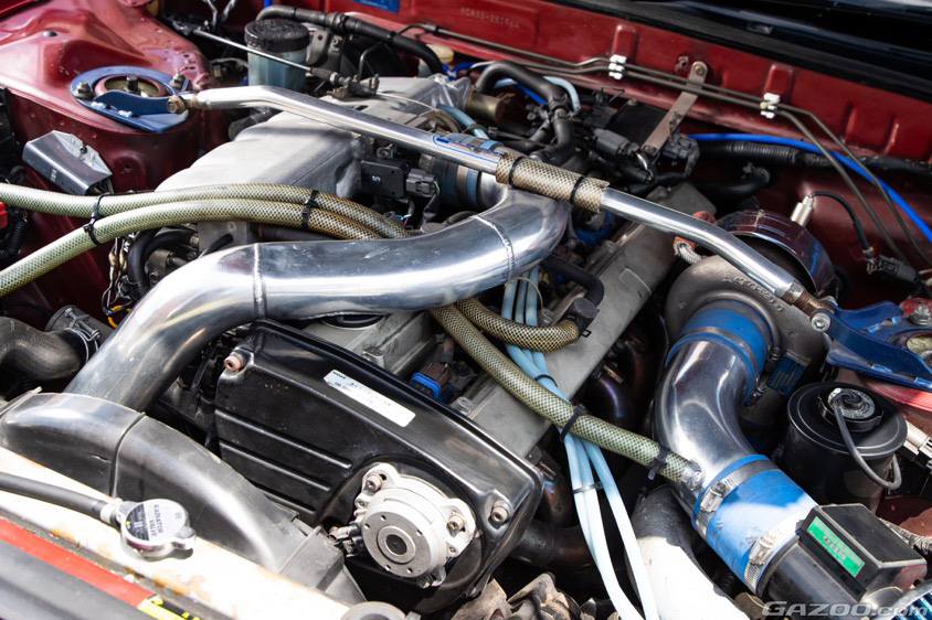 前置きインタークーラーはGT-R純正を流用、タービンはS14純正に交換し、奥様が乗ることも考慮して扱いやすいようにエンジン出力は300馬力ほどのライトチューンとするなど、いろいろ手を加えていったという。