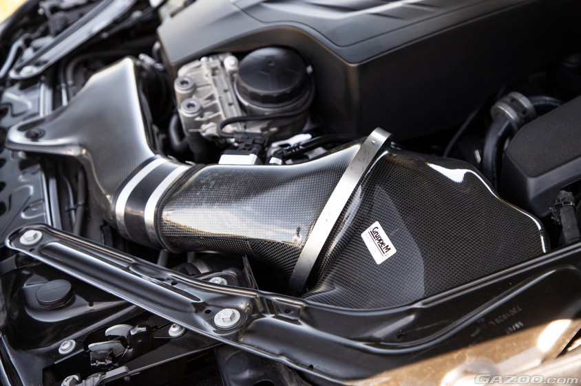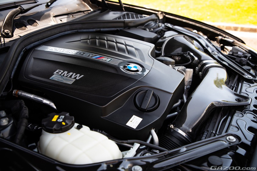 当初はポルシェ・911やBMW・M4などもターゲットにしていたのだが、後席のスペースやビルドインガレージのサイズ問題で断念せざるを得なかった。そこで目に留まったのがM2。コンパクトなボディに直列6気筒ツインターボエンジン(N55B30A)を搭載し、ノーマルでも370psを発揮するパフォーマンスは見逃せない。さらに中古車サイトで見かけたこの車両は、社外のインテークキットなども装着され、センス良くまとめられていたことも購買意欲を刺激されたという。