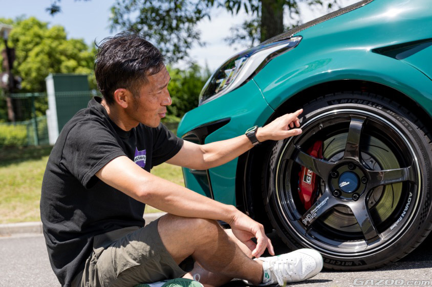 「納車前に8本用意したくらいアドバンのTC-4がめちゃくちゃ好きで。でも納車時はフロントホイールが収まらなかったので、違うサイズをさらに買い足したりして、一時期は12本持っていました。アペックスの車高調に変えた今は、当初のサイズがフロントにも入るようになったので、追加購入した分は後輩が使っていますね」