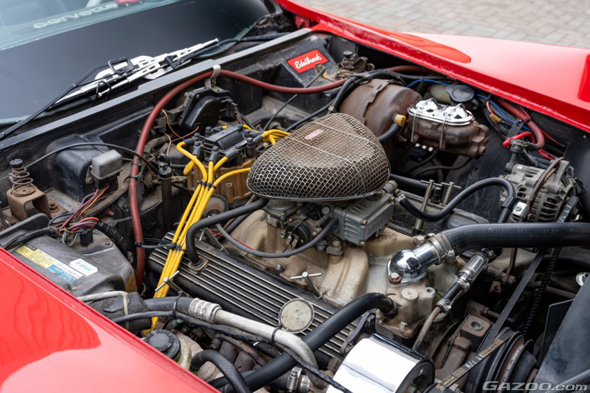 エンジンはスタンダードな5.7LのV8スモールブロックを搭載した個体だが、キャブレターはホーリーのダブルポンパーへ、ディストリビューターも旧来のポイント式からHEIに変更することで、不安材料を払拭するアップデートが行なわれている。