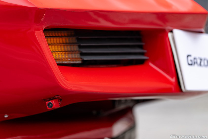 ロングノーズ/ショートデッキのスタイリングは、デザイン的には魅力的ではあるものの、運転するとなるとデメリットも大きい。特にフロントの見切りが悪く、見通しの悪い路地などから合流する場合は左右の状況が判断できないこともある。そのためフロントは左右方向に向けてカメラをセット。コンソールに取り付けたモニターに映し出すことで、安全にドライブできるよう工夫が施されているのだ。もちろんバックカメラも搭載しているため、全方向フルカバーの安心感が得られるのは現代的なアップデート術と言えるだろう。