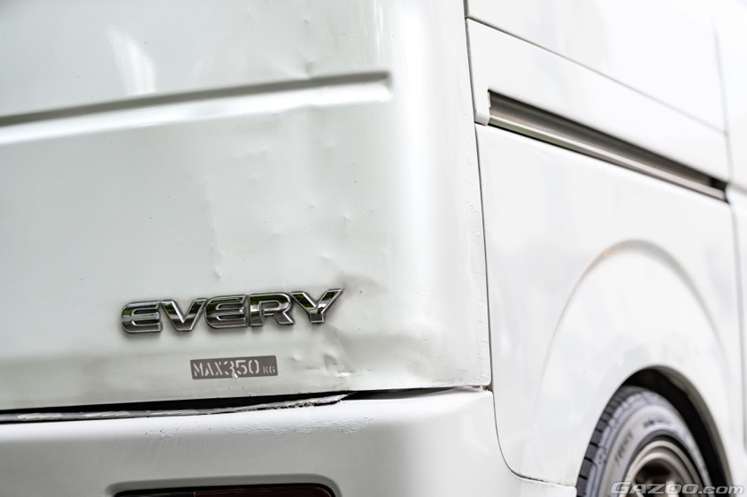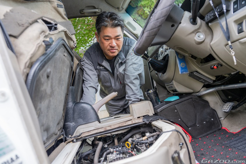 キャブオーバータイプのエブリイはシート下にエンジンが搭載されている。このエンジンはスズキの主要な軽自動車に搭載されるK6A型で、中古エンジンを探す際にも苦労なく見つけられるため、23万キロ走行した車体でもいざとなったらエンジンを載せ換えて維持できると判断したわけだ。