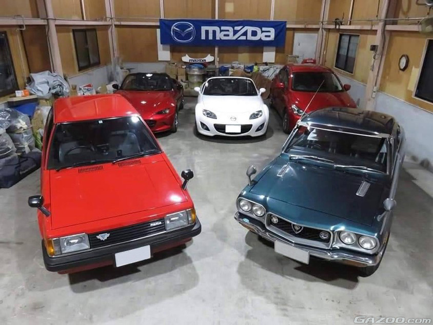 オーナーのお父様は、マツダ関連の会社に勤めていて、家のクルマは歴代マツダ車だったそうだ。2ドアのキャロル360、2ドアセダンのファミリア800、2ドアクーペのグランドファミリア、ロータリーエンジンのサバンナクーペ、4ドアのファミリア、その後も4ドアのファミリア等々。途中から父親が4ドアを選ぶようになったのは、体格が大きくなっていった自分たちのせいだと笑った。
