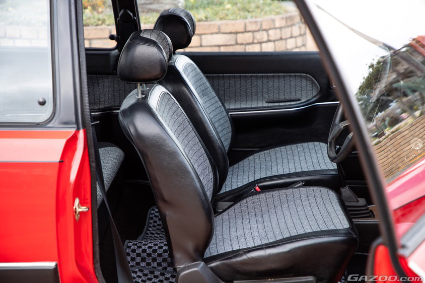 直線を基調として構成されたボディラインは、今でも古さを感じさせることなくスマートでクリーンな佇まい。内装は黒とグレーのモノトーンで統一され、シックでスポーティな雰囲気に仕立てられている。