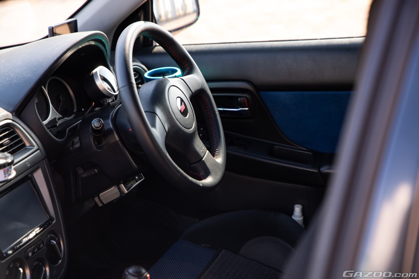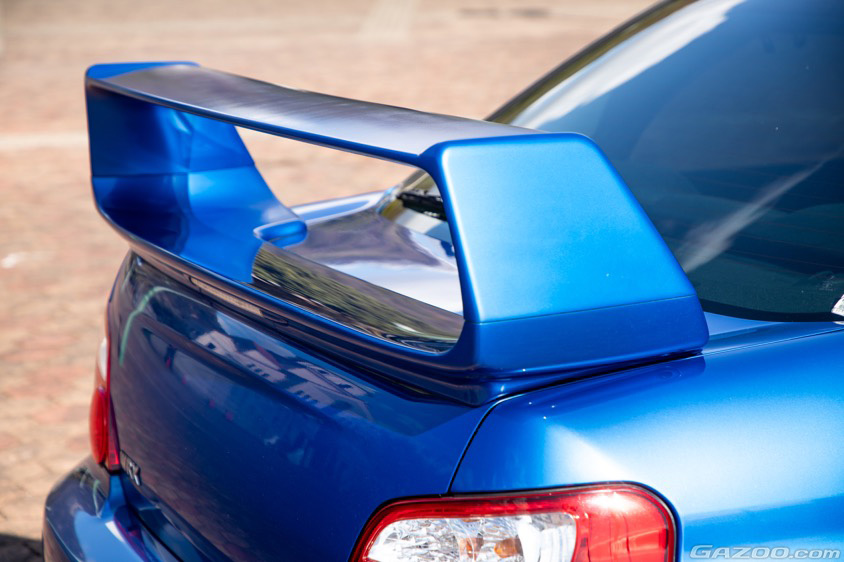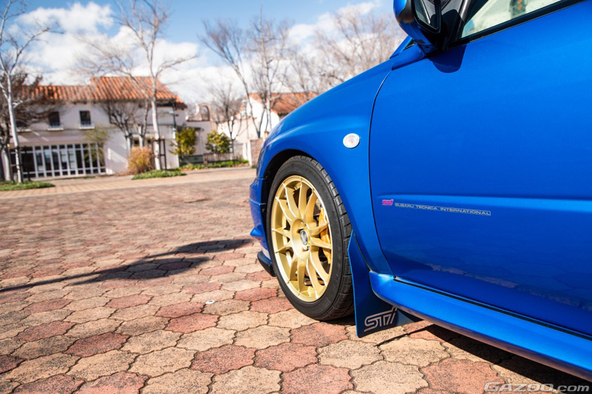 WRブルーにゴールドのホイールというのが、またスバル車らしい組み合わせだ。オーナー曰く、『いかにも速く走りそうな雰囲気のリヤウイングの存在感、筋肉隆々の程よく引き締まったボディは、まさにWRC参戦マシンのベース車両ならでは』と、感じているそうだ。