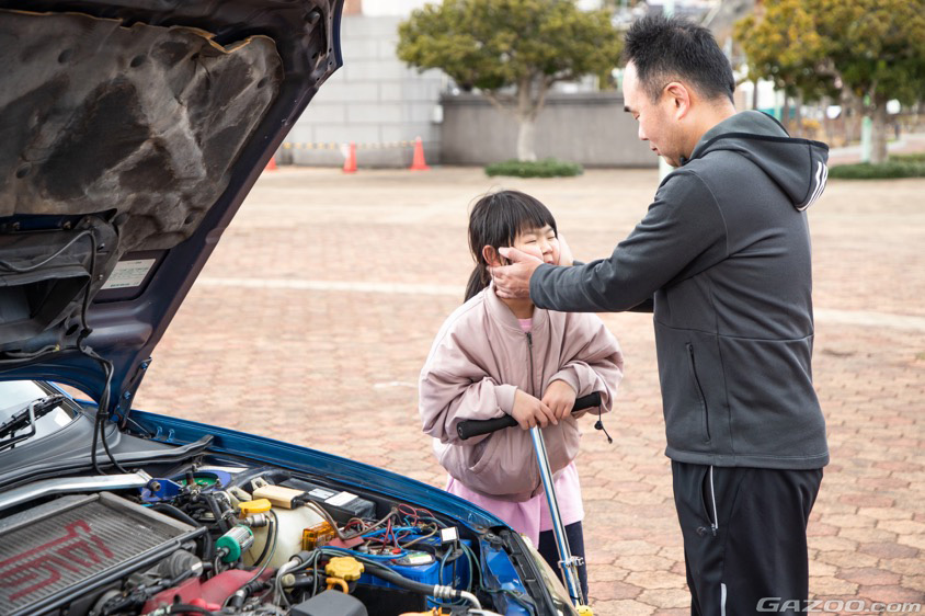 そんなインプレッサを愛車として迎え入れたのは14年前で、弟さんが譲ってくれたのが始まりだという。実のところ、最初は派手すぎるのでは? と懸念していたのだそうだ。しかし、最愛の娘さんがこう言ってくれるなら、今となっては感無量といった所か。