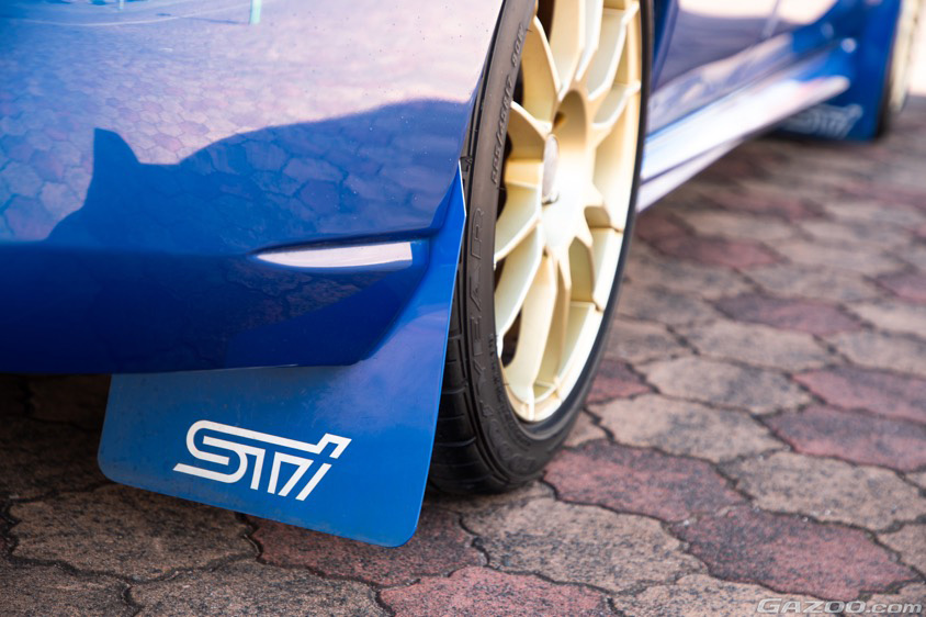 WRブルーにゴールドのホイールというのが、またスバル車らしい組み合わせだ。オーナー曰く、『いかにも速く走りそうな雰囲気のリヤウイングの存在感、筋肉隆々の程よく引き締まったボディは、まさにWRC参戦マシンのベース車両ならでは』と、感じているそうだ。