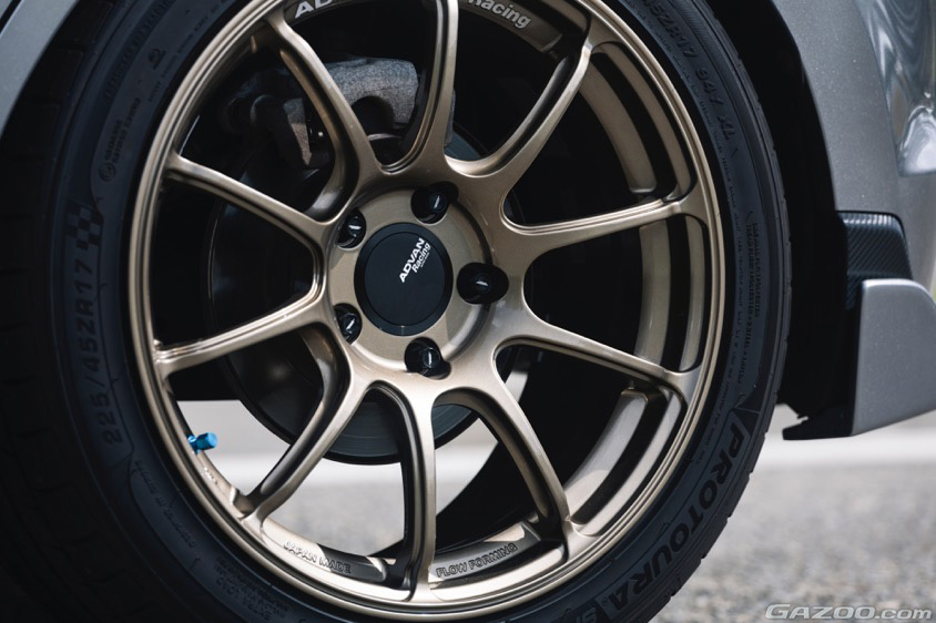 足元にはこのスイフトスポーツにとって2セット目のホイールとなるアドバンレーシング・RZⅡをセット。このホイールを装着したスタイリングはまさに理想だったそうで、愛車に乗る前や降りた時などはしばらく惚れ惚れと眺めてしまうほどだとか。