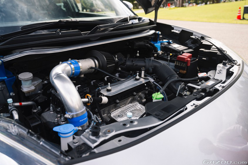 エンジンはインテークパイプやエアクリーナーを交換するとともに、マフラーも交換済み。スポーティに走る楽しみをより明確にするためのアレンジを楽しんでいるあたりも抜かりはない。