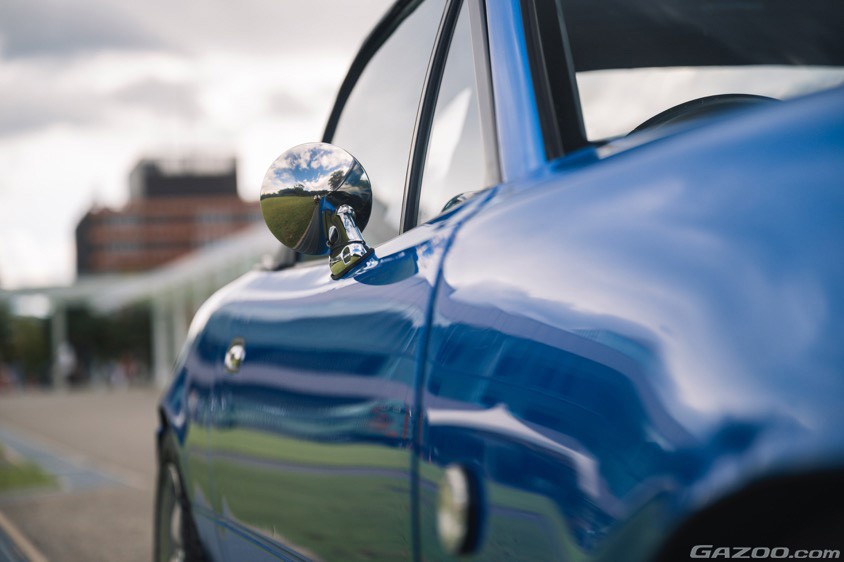 運転席まわりはパーソナルのステアリングや、握りやすい球体のシフトノブを装着して操作感を高めるとともに、メーターパネルやシフトノブはボディカラーに合わせたブルーをチョイスして、シンプルながらもインテリアのカラーコーディネートを楽しんでいる。