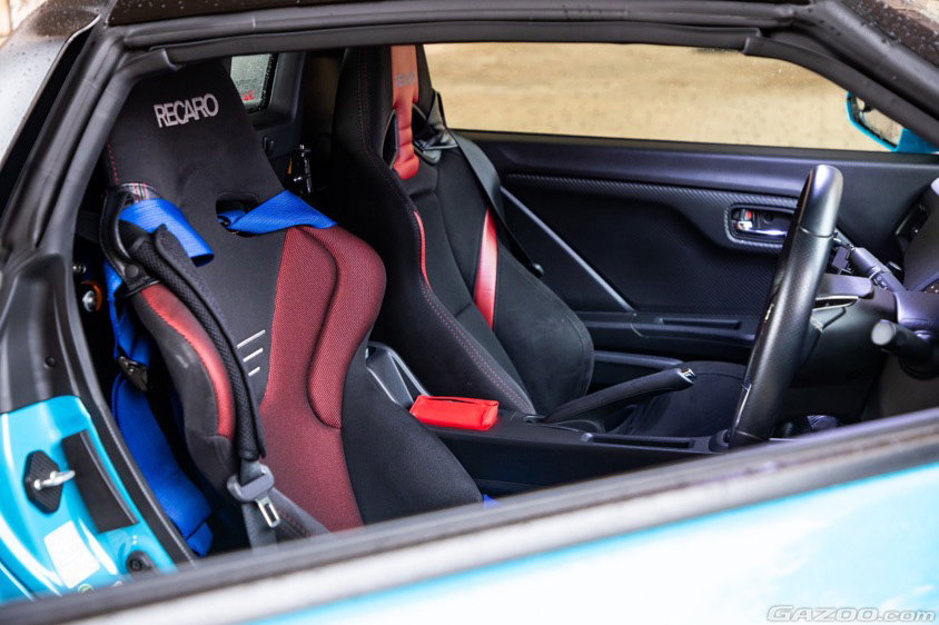 街乗りはもちろん、このクルマでサーキット走行も本格的にチャレンジしたいと考えた彼女は、バケットシートや追加メーター、ホイールなどの装備も導入。スタビライザーを変更したり、冷却対策のダクトを追加したりと、少しずつカスタムを楽しんでいるという。