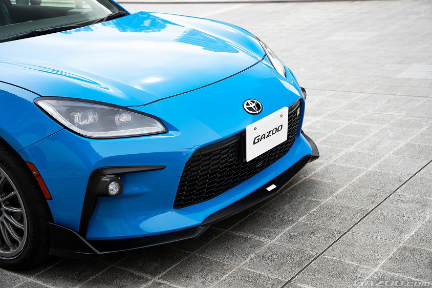 走る楽しさやカスタムしやすいスタイリングなどが支持され、今では街中で目にする機会も非常に増えてきたトヨタ・GR86(ZN8型)。その中でも比較的レアなボディカラーとなる、色鮮やかなブライトブルー色が眩しい。