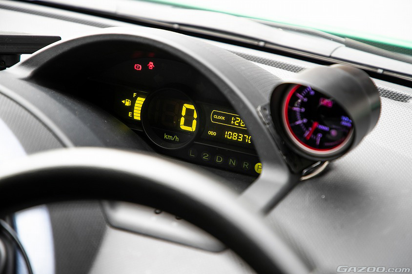 一方、車内はシンプルだが、タコメーターを追加しているところがポイントとなる。といのも、それがぴろし先生の運転の楽しみ方を知る上で大きなヒントとなっているのだ。