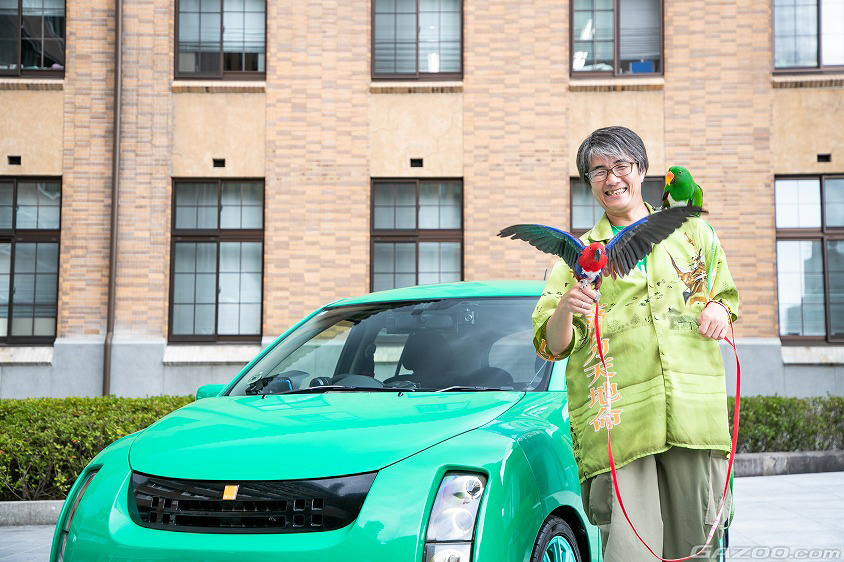 そんな明るく楽しそうな挨拶と共に、鮮やかな緑色のWiLLサイファ(NCP70)で出張取材会の会場となった山梨県庁に現れたのは、グリーンのシャツを羽織り、2羽のインコを肩に乗せた『ぴろし先生』。