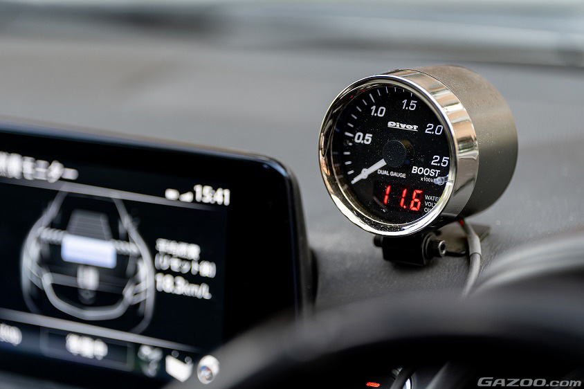 歴代の愛車にはないターボ仕様ということもあり、ダッシュボード上に置かれたブーストメーターも愛車への満足度を高めるポイントとなっている。