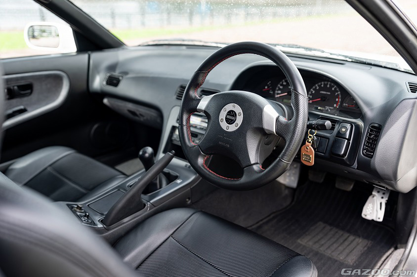 「ステアリングは擦れが酷かったので張り直しました。サスペンションも装着されていたショックアブソーバーがヘタっていたのでニスモ製に交換しています」と、理想の純正オプション仕様を極力崩さないように手を尽くしている。