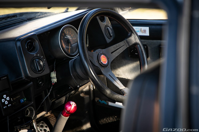 ちなみに、現在の愛車に搭載されているエンジンは、グループA仕様のAE101用5バルブ4A-G。点火系は調整範囲の広さから電子制御式となっているが、吸気系統はあえてアナログで、フォーミュラトヨタ用のインテークマニホールドを介して装着されたキャブレターは“ウエーバー製よりもフィーリングが好き”という理由からソレックス製の44φを選んでいる。