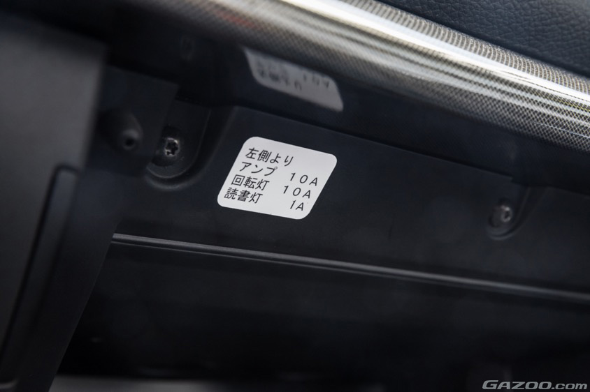 「この車両は、おそらくですけど……事件現場に向かうというよりは、それなりの方を送迎するのに使っていたんじゃないかと推測しているんです。例えば、この白いレースはメーカー純正品なんですけど、覆面パトカーにはわざわざ装備しないと思うんですよ。ダッシュボードを開けると貼ってある、読書灯というシールを見て下さい。きっと、刑事部長クラスの人が何かの資料を確認するために取り付けたんですよ!」と、さながら刑事のような推理を見せてくれたせんこうさんの内装のお気に入りポイントは読書灯だという。