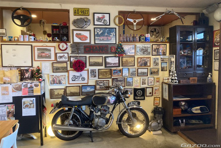 お店の場所は九州・熊本の超定番ドライブコースからも近く、店内にもクルマやバイク関連の様々なアイテムをディスプレイしていることから、クルマやバイク好きも多く訪れるという。赤いシビックも看板代わりの目印とされ、ミニカーや手描きのイラスト、関連する雑誌などがプレゼントとして寄せられている(現在は来客用の駐車スペースを広く取れるように、セカンドカーのアルトワークスでの出勤が多いとか)。