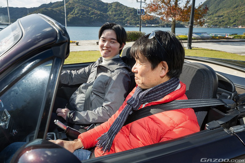 「最近のクルマと比べると、ロードスターは利便性に劣るなぁという印象でした。加えて、それほどスピードが出でいなくても体感速度的に速く感じるのが…。幼少期の頃に怖かった記憶がありまして…。でも、いざ自分で乗り出すと、車内が狭いのも案外悪いものではないと感じているんです。狭そうだと思っていた車内は無駄な空間がなく、むしろすごく落ち着くんです。また、運転する側になると、比較的低速でもハイスピードなドライブ感を味わえるので“アリ”だと思うようになりました。あとは、ロードスターに乗ることで、世代を超えた交流が生まれたのも良かったですね」