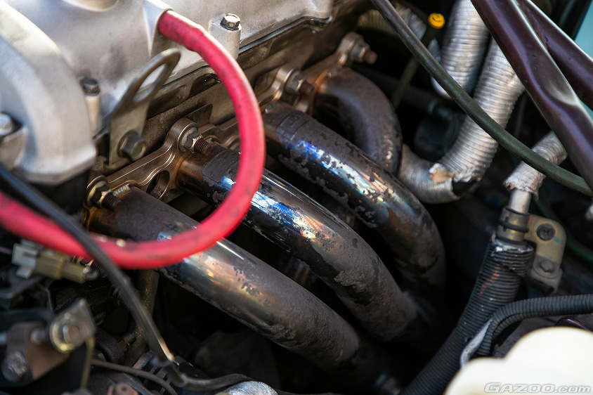 激安で手に入れたとはいうものの、エンジンまわりにはオートエクゼ製カーボンエアクリーナーやマキシム製エキマニなど豪華なパーツが装着されている。これらは前オーナーが手を加えたポイントなのだとか。