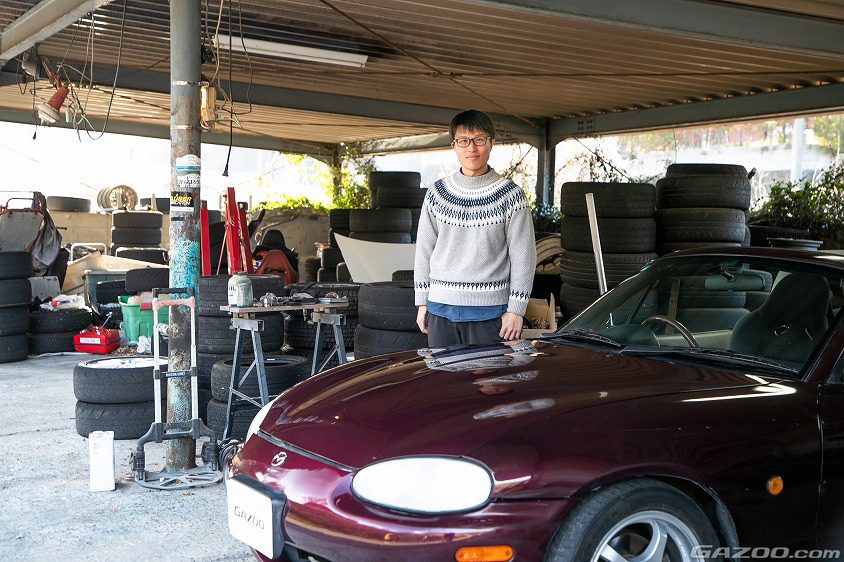 「大分大学に入学してすぐ、自動車部に入部すると決めていたので部室に足を運びました。そしたら遠くから快音を響かせたこのロードスターがやってきたんです。しかも、乗り付けた先輩が部活を見学中の自分に“買わないか?”と言ってきたんです。その時はまだ運転免許を持っていなかったのですが、メチャメチャきれいな状態で、しかも激安なプライスを提示されてしまったら買うって即答しちゃうじゃないですか。それから夏休みに運転免許を取得して、無事に譲り受けることになりました」