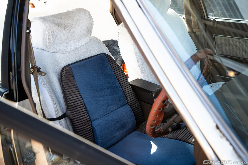 確かにパッと見ただけでもキレイなコンディションが保たれていることが伝わってくるシャルマン。昭和レトロを感じさせるレースのシートカバーやリヤウィンドウのカーテン、さらには可愛らしいぬいぐるみなども、前のオーナーさんから継承したものだそうだ。捨ててしまうのは簡単なはずだが、当時の空気感とともに、前オーナーさんの想いやこのクルマが歩んできた歴史を大事にしているところに、カワゾメさんの人柄が垣間見える。