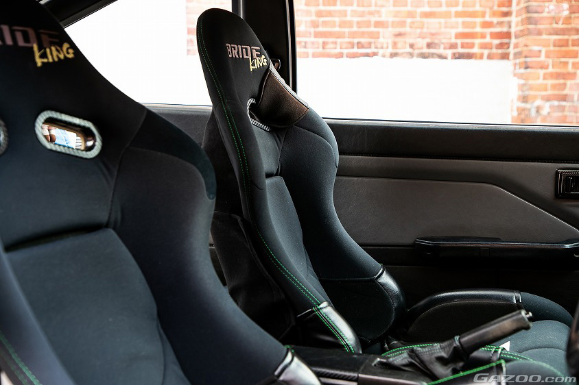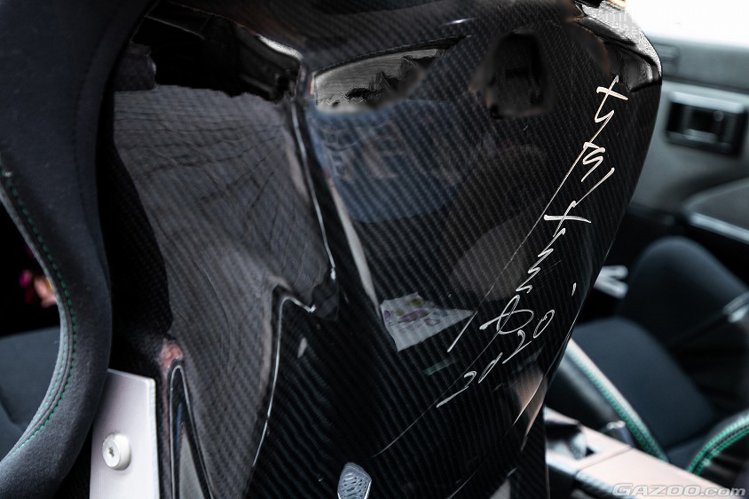 「一番はBRIDEのキングシート(土屋圭市モデル)ですね。最終生産ロットのものなんですが、テックアートの社長がわざわざ土屋さんに直筆サインを入れてもらったものをサプライズで用意してくれたんです!! 他はシフトブーツパネルで、父親のカプチーノで使われていたカーボン製のものをテックアートの社長に見せて、同じようものをワンオフで作って頂きました。他にもボロボロになったトランクのカーペットを綺麗にしたいと相談したところ、こちらもワンオフで新しく作ってくれたんです。ちなみにその後は商品化したみたいで、今では誰でも買えるようになりました(笑)。テックアートさんって、本当にどんな要望にも柔軟に対応してくれるんです」