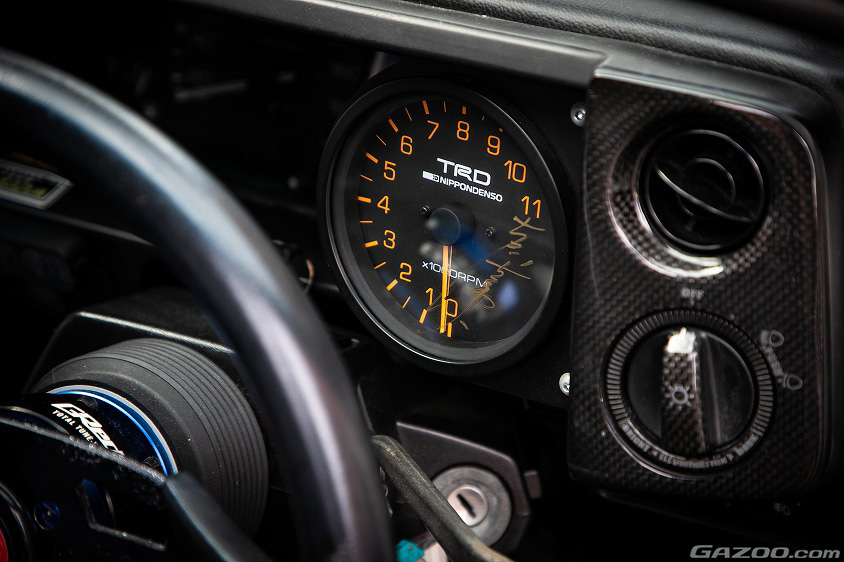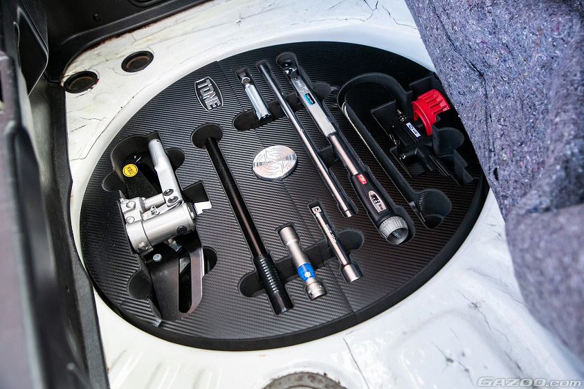 また、テックアート関係以外にも優也さん自慢のカスタマイズもある様子で「ハチロクを買う前に初任給で買ったTRDのレース用タコメーターに、イベントで会った土屋さんのサインを入れてもらったんです。それと、レーシングドライバーの谷口信輝さんも大好きで、トランクにはHKS社とのコラボの工具箱を置いています。で、その下のタイヤハウス内にも、谷口さんがTONE社とコラボして作った、受注生産の車載ツールセットを追加しました。それなりの金額は掛かってしまいましたが、トルクレンチも持っていなかったのでとても重宝しています」