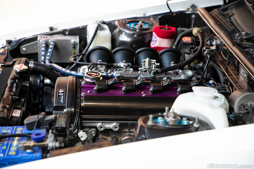 憧れや好きなものに対し、妥協なくアグレッシブさを発揮する優也さんの情熱が、テックアートさんの心を動かしたことは確かだろう。そしてそんな優也さんの情熱に応えながら10年かけてコツコツと手を入れ続けてきた結果、ボディ色は理想の白黒に、足まわりは街乗りでも乗り心地が抜群な仕様となり、エンジンはテックアート製の20バルブ4A-G(MoTeC製M130で制御)へとアップデート。優也さんが思い描いていた理想のAE86にかなり近づくことができたそうだ。