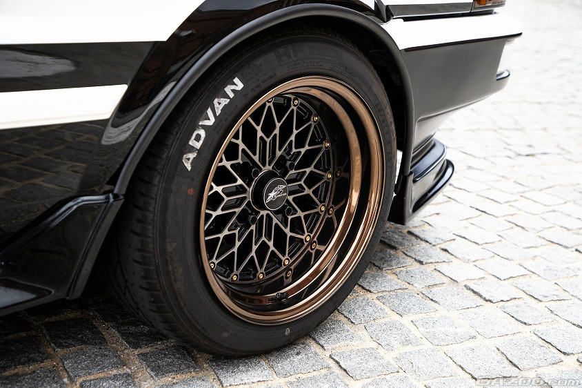 「タイヤはYOKOHAMAタイヤが好きなのでHF TYPE-Dの復刻版を買って『ADVAN』の部分をホワイトレタリングにしてみました。それと、スターロード製のGLOW STERホイールも自慢ですね。S30Zにハマっていた中学生の時、クルマ雑誌にスターロードが出ていて、その頃からずっとファンだったんです。2年前にショップを訪問して、このホイールを買うことができて嬉しかったです!」