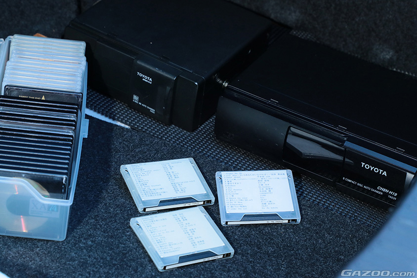 ここで令和の若者に、MDとCDチェンジャーが何であるかを説明するには紙幅に余裕がないので割愛させてもらうが、よともさんのマメな性格が現れているのがMDの背面に貼られた曲名リスト。エクセルを使って一から打ち込んだそうで「どの曲が何曲目に入ってるかすぐわかって便利でしょ!」という言葉には、ついウルッと来てしまった。