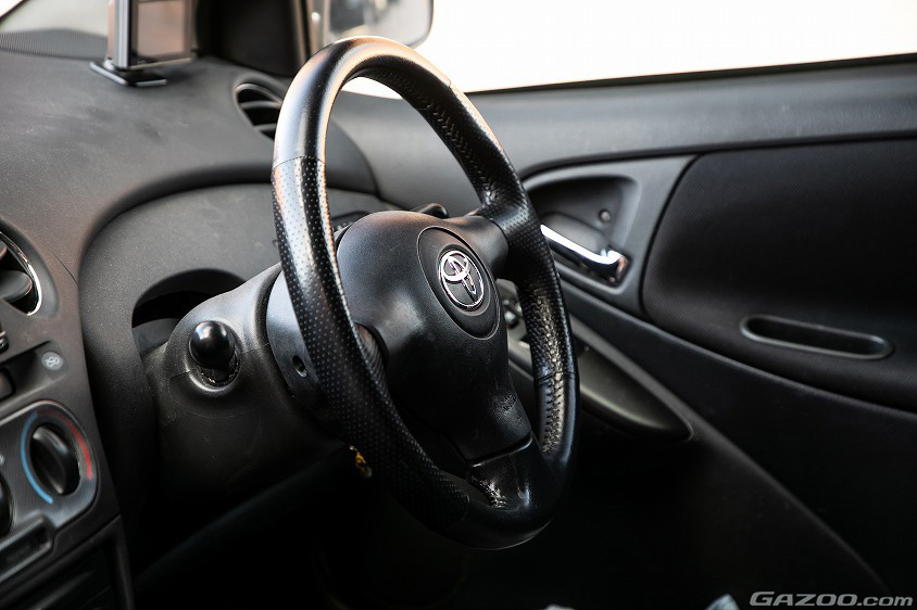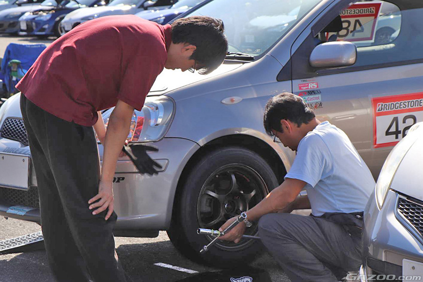 「このヴィッツは修繕部品が手に入りやすく、メンテナンスがしやすいんです。というのも、クルマは軽いのに、以前のセリカなど、2リッタークラスのクルマにも使えるブレーキパッドが流用できますし、兄弟車種のプラッツや同時期の他のヴィッツの部品も流用できるところが良いんです。それに、初期型ヴィッツには5ドアモデルもあるんですが、3ドアの方が軽量なので、そんなところも競技向きでして」