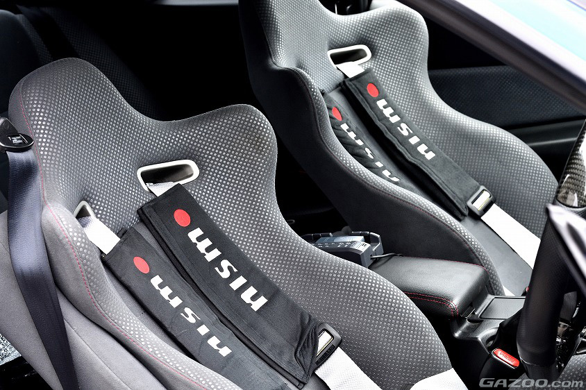 4点式のハーネスやニスモのシートベルトパッドもアクセントとして加えているが、サーキットをガンガン攻めるわけではないため、純正シートでも十分にホールド性をキープしてくれる。スポーツカーだからと言って、必要以上のカスタマイズを行わないのもキムさん的なGT-Rとの付き合い方というわけだ。