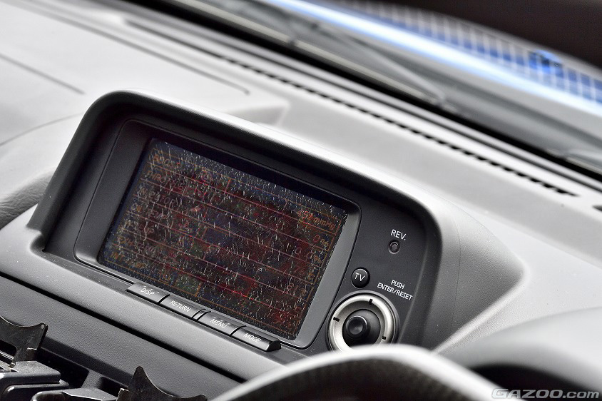 R34GT-Rの泣き所と言えるのがマルチモニターの劣化。経年とともに液晶フィルムが変色するため、どんなに大切に扱っていても車齢を隠せない部分でもある。とは言っても、一生乗り続けると決意したキムさんだけに、この新品パーツもしっかりとストック済み。現状のモニターでも辛うじて視認できるため、このモニターが完全に見えなくなってしまったら、新品パーツと入れ替える予定だとか。