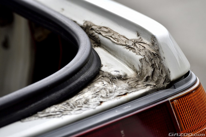 念のため雨漏り対策として入り込みそうな部分にコーキングを打って様子を見ている。とはっても、その気になればいつでもリペア可能なところはハチロクの良いところ。特にレストア用ボディパネルも豊富にリリースされているだけに、こういったパーツを利用することも対策のひとつというわけだ。