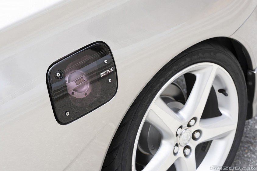 リヤガーニッシュの『CELICA』のエンブレムは純正ではないものの、当時のオプションパーツとして用意されていた発光体をベースに、青森県のオーナーが復刻したものをセットした。さらにフューエルリッドはTRD製のスケルトンタイプを装着。スケルトンや発光といったキーワードは、平成中期のブームを捉えたアイテムであり、Rayさん世代には新鮮に映っているのだとか。